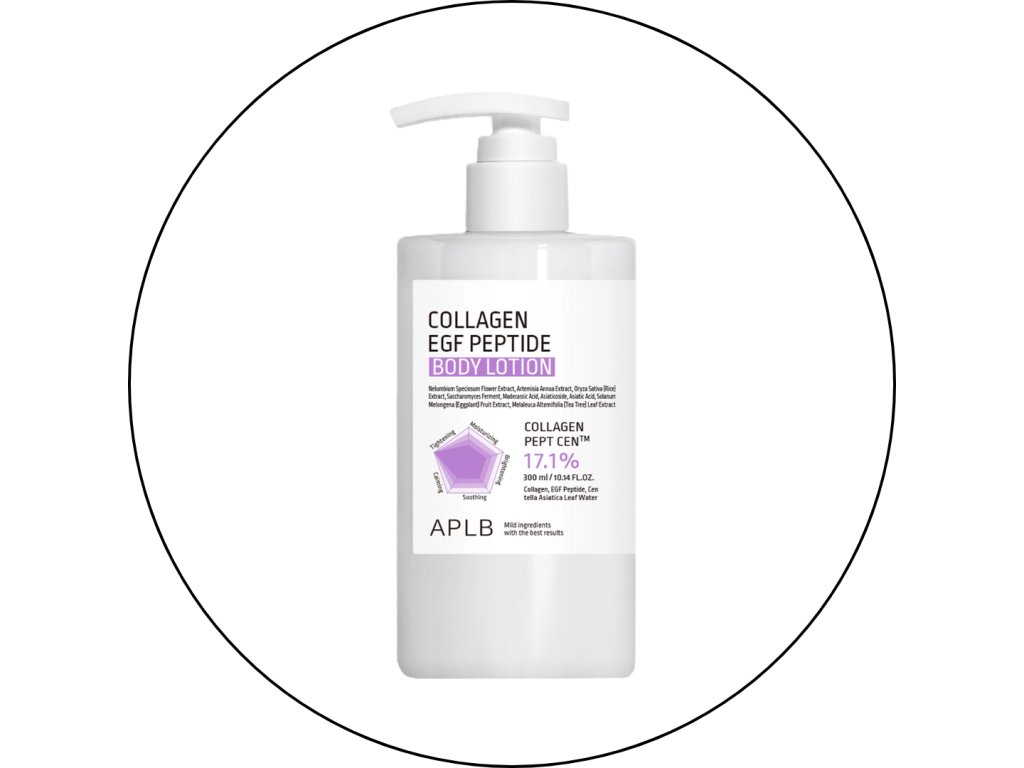 APLB Collagen EGF Peptide Body Lotion je výživné tělové mléko obohacené o kolagen, EGF a peptidy, které pomáhá hydratovat, zpevňovat a zlepšovat pružnost pokožky. Jemná textura se rychle vstřebává a zanechává pokožku hebkou, hladkou a příjemně vyživenou.
