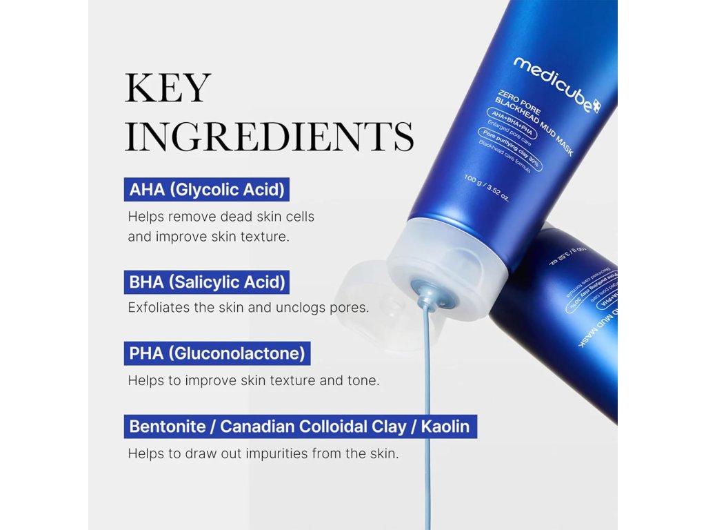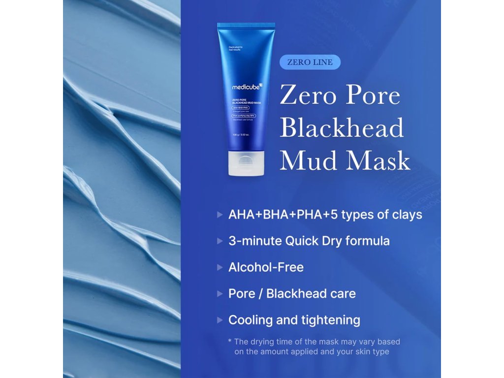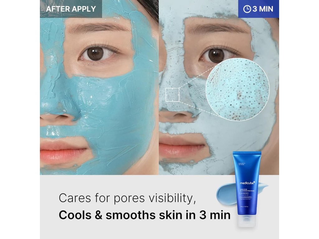 Medicube - Zero Pore Blackhead Mud Mask je inovativní maska navržená pro hloubkové čištění pleti a redukci černých teček. Její unikátní formulace kombinuje přírodní jíly s aktivními složkami, které odstraňují nečistoty a přebytečný olej, čímž napomáhá zúžení pórů a zlepšení textury pleti. Tato maska také pomáhá regulovat nadměrnou produkci mazu a zanechává pleť svěží a vyváženou.