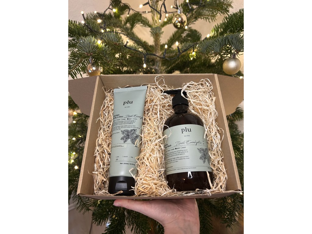 Vytvořte si relaxační rituál s touto vánoční dárkovou sadou od PLU, která je inspirována aromaterapií. Set obsahuje osvěžující Sprchový gel (500 g) a vyživující Tělové mléko (200 ml), oba s unikátní bylinkovou vůní bazalka & eukalyptus. Celá sada je pečlivě zabalena v dárkovém balíčku a převázána sváteční červenou mašlí. Dokonalý dárek pro chvíle klidu a pohody.