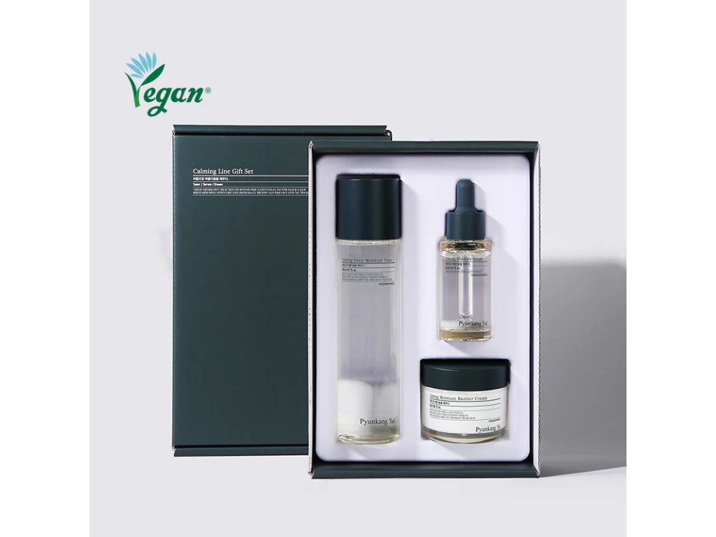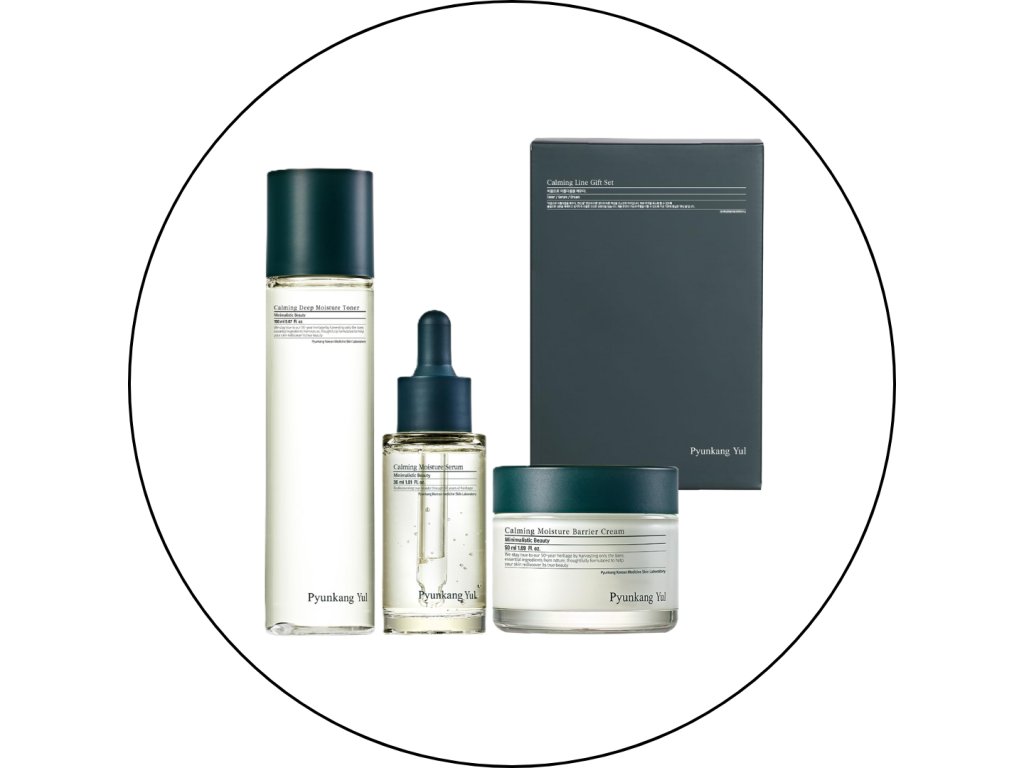 Calming Line od korejské značky Pyunkang Yul se zklidňujícími vlastnostmi pro citlivou a podrážděnou pokožku. Sada obsahuje produkty pro kompletní rutinu péče: tonikum, sérum a hydratační krém – ideální jako dárek nebo startovací sada.