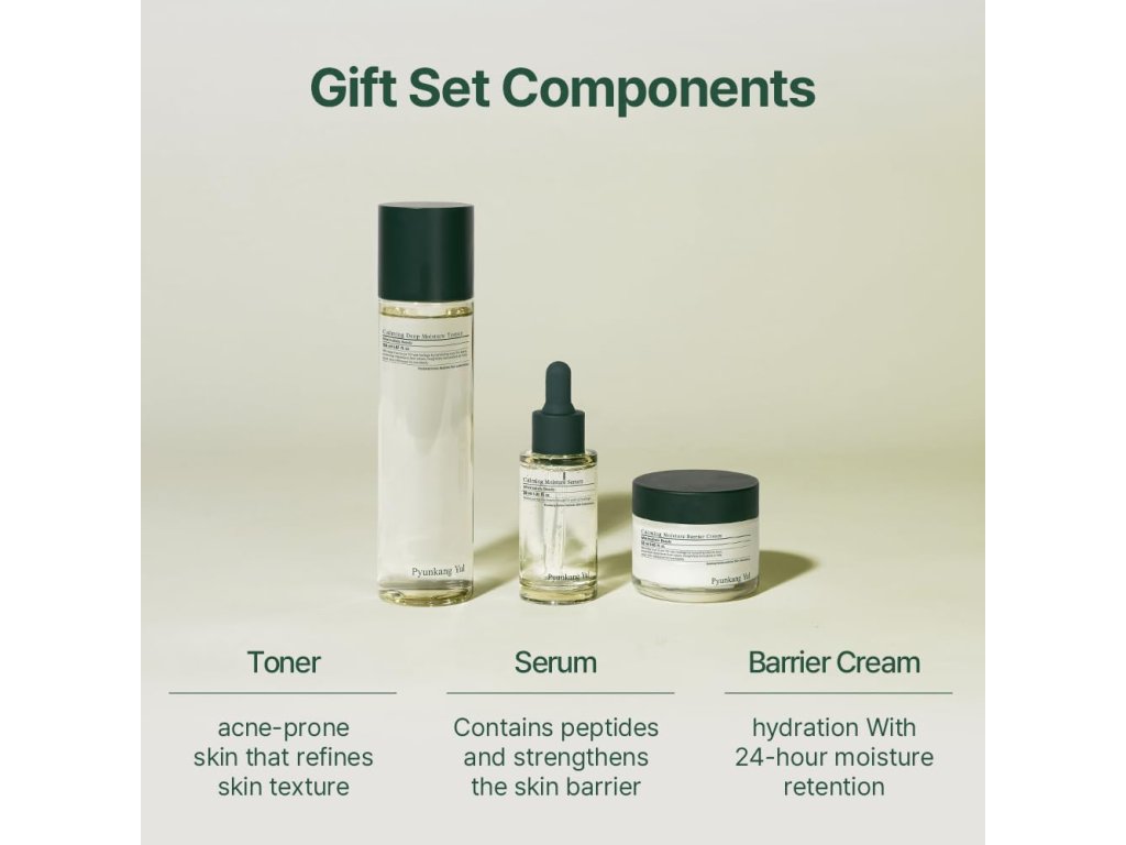PYUNKANG YUL – Dárková sada Calming Line je pečující set navržený pro maximální zklidnění, hydrataci a ochranu citlivé pokožky. Sada obsahuje tyto produkty: