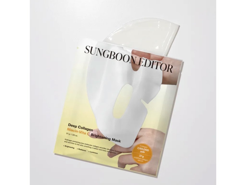 Sungboon Editor – Deep Collagen Niacin‑Vita C Brightening Mask je výživná dvojdílná hydrogelová maska s nízkomolekulárním kolagenem, vysokou dávkou niacinamidu a vitamínu C. Intenzivně vyživuje, vyhlazuje pleť a sjednocuje její tón.